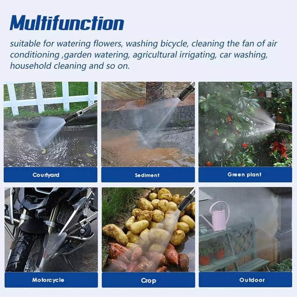 Nylon Voltage: 21V Battery capacity: 7500mah Life time: about 30 minutes Rated power: 240W Working Pressure: 3MPA / 30BAR / 435PSI Max Pressure : 3.5MPA / 35BAR / 507PSI Rated flow: 3.5L/min Peak flow rate: 3.5L/min Motor type: 550 Motor cooling method: automatic cooling Power cord length: 5 meters Inlet pipe length: 5 meters Stainless steel pole: 15.5cm Diameter inlet pipe: 7.5cm Outlet: 1.3cm Foam pot: 200ml Body size:20x15cm